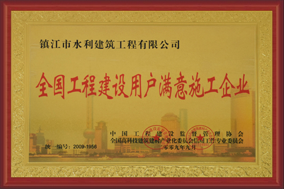 公司被評為重合同守信用企業(yè)、江蘇省水利安全生產(chǎn)標準化二級單位、AAA級資信企業(yè)、誠信示范企業(yè)、全國工程建設(shè)用戶滿意施工企業(yè)。